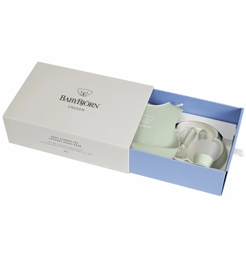 The comfy bib’s deep spill pocket catches any food that doesn’t make it into your child’s mouth. Less messy mealtimes for everyone! BABYBJÖRN Baby Dinner Set is available in several delightful colors that suit the modern home.