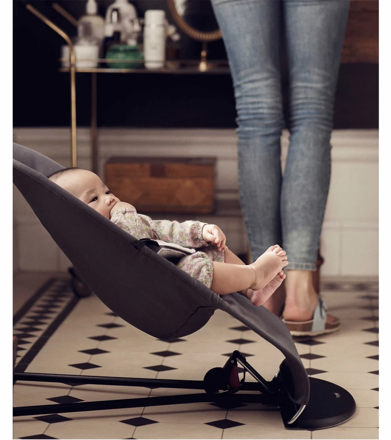 The BabyBjorn baby bouncer runs on fun alone – no batteries required! Your child’s own movements will bounce the chair. Your baby can have fun bouncing, while developing motor skills and balance in a completely natural way. Younger babies can be gently calmed by carefully bouncing the chair with your hands or feet.