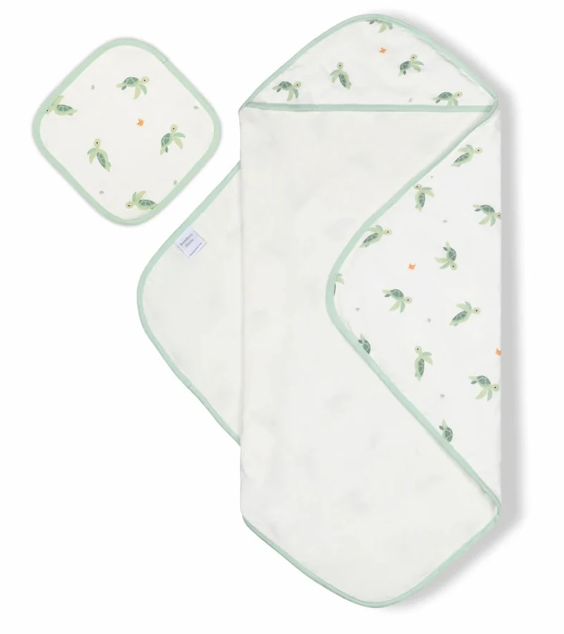 Our matching bamboo hooded baby towel and washcloth set makes bathtime a joy. Each terry-lined washcloth and hooded towel is super soft, naturally moisture-wicking, and odor-resistant, so the smiles stay long after the splashes are over.