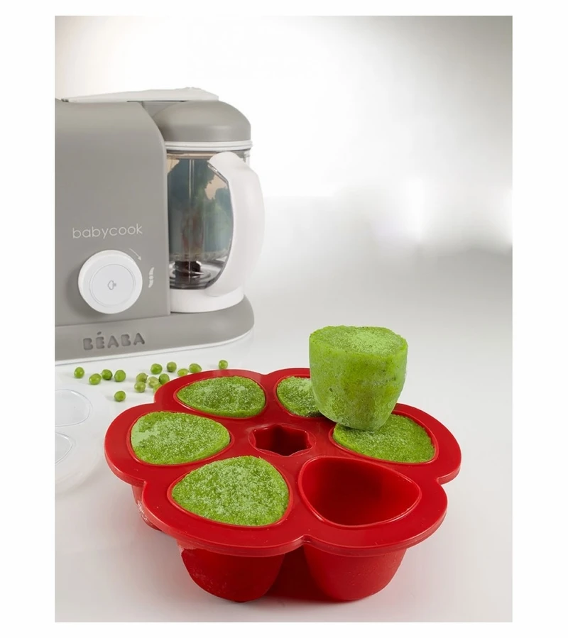 Beaba Multiportions is designed for freezing and storing a la carte foods for baby. Multiportions is comprised of six individual 3 oz portions. Made from high quality, platinum grade silicone, a single portion of frozen food is easy to pop out. These lightweight storage containers are freezer, microwave, oven and dishwasher safe. This product is the perfect complement for Babycook allowing you to make the freshest and best food for baby ahead of time.