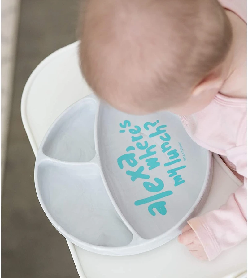 Our silicone suction plate is divided into 3 sections for well balanced meals, promotes good eating habits and appropriate portions. The plate suctions to any table or highchair tray to keep meals in place.