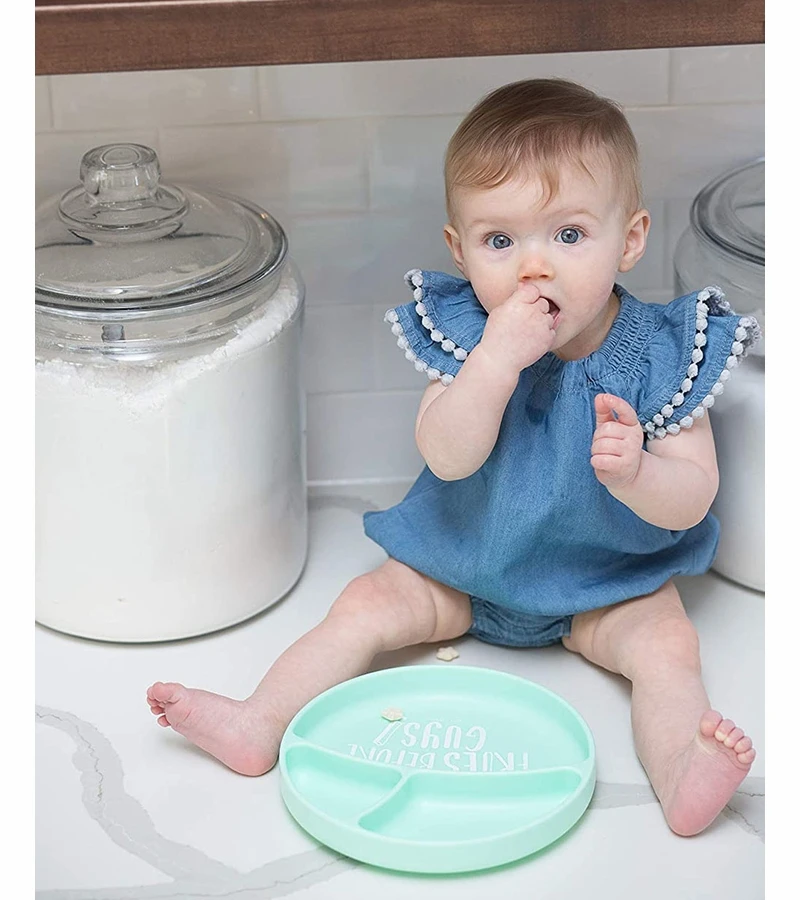 Our silicone suction plate is divided into 3 sections for well balanced meals, promotes good eating habits and appropriate portions. The plate suctions to any table or highchair tray to keep meals in place.