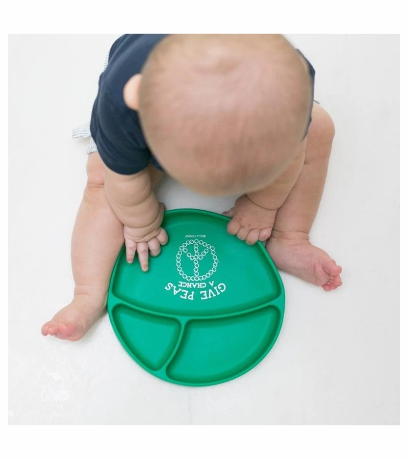 Our silicone suction plate is divided into 3 sections for well balanced meals, promotes good eating habits and appropriate portions. The plate suctions to any table or highchair tray to keep meals in place.