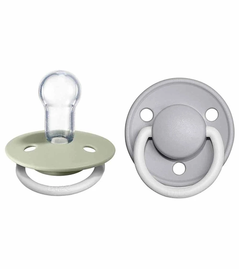 BIBS De Lux GLOW Silicone Pacifier, 2 Pack - Sage/Cloud - One Size (0-3 Years)