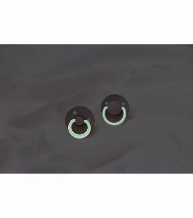 GLOW pacifiers with a practical glow feature. Hold the pacifier in light for 5 seconds to activate the glow. The luminescent effect lasts for 8+ hours.