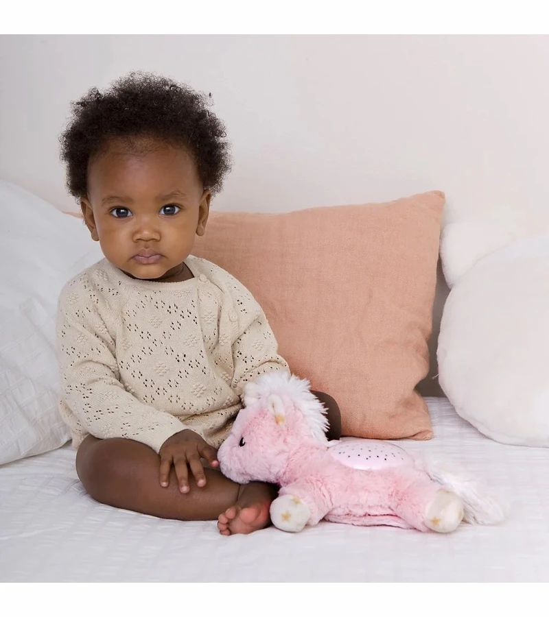 Cuddly companion projects a starry night sky including The Big Dipper constellation. The 45 minute timer ensures complete darkness during child’s deep sleep, as recommended by pediatricians.