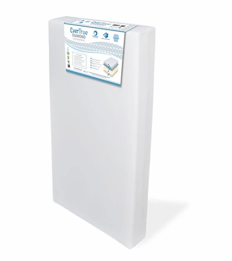 The EverTrue Diamond is a 6 thick, dual-firmness foam crib mattress with advanced safety, health, and comfort features. We’ve combined Colgates exclusive SecureCore Technology® with a breathable honeycomb mesh spacer, to provide unprecedented airflow. These unique components adapt to each childs sleeping position, provide increased air circulation, instant pressure relief, and continuous support where your child needs it most. The cover is made of Celliant®, the worlds first biologically responsive fabric, which regulates body temperature and improves overall sleep quality. The dual firmness design provides the extra firmness infants need for proper development on one side and the added comfort toddlers prefer on the other using Diamond-channel gel memory foam. The Diamond features plant-oil infused eco foam and ultrasonically welded side seams. This mattress meets and exceeds all federal and state requirements for flammability and chemical composition and has earned the GREENGUARD® Gold and Certi-PurUS® certifications ensuring no harmful air emissions. This unit fits all standard size American cribs and toddler beds.