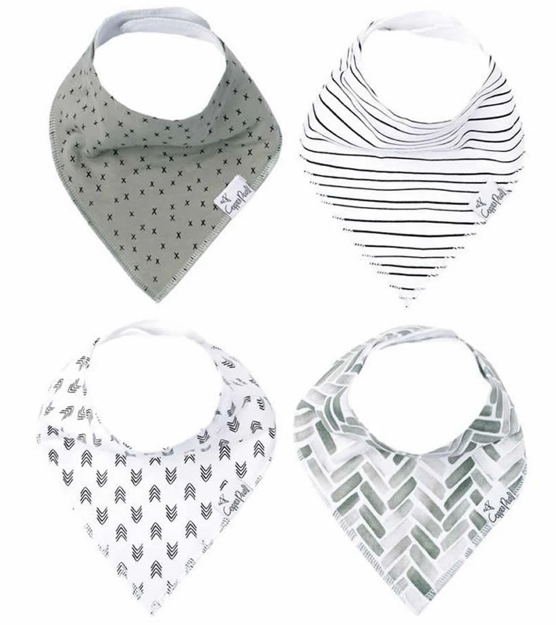 Copper Pearl’s 4-pack of baby bibs makes the best gift for new parents, new grandparents, baby showers, Christmas present or for any excuse to make a baby look amazing.