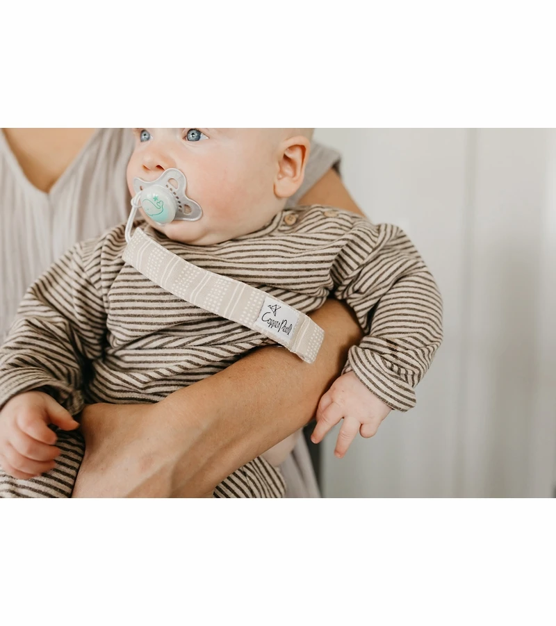 Offering the ultimate blend of fashion and function, our unique Binky Clip features a premium knit strap lined with absorbent fleece to help soak up drool. Simply attach baby’s pacifier or teether to one end, then fasten the clip to clothing, blankets or baby gear. Oh, and by the way our set includes three Binky Clips to keep with you wherever you go – no more floor drops or pacifier pick-ups!