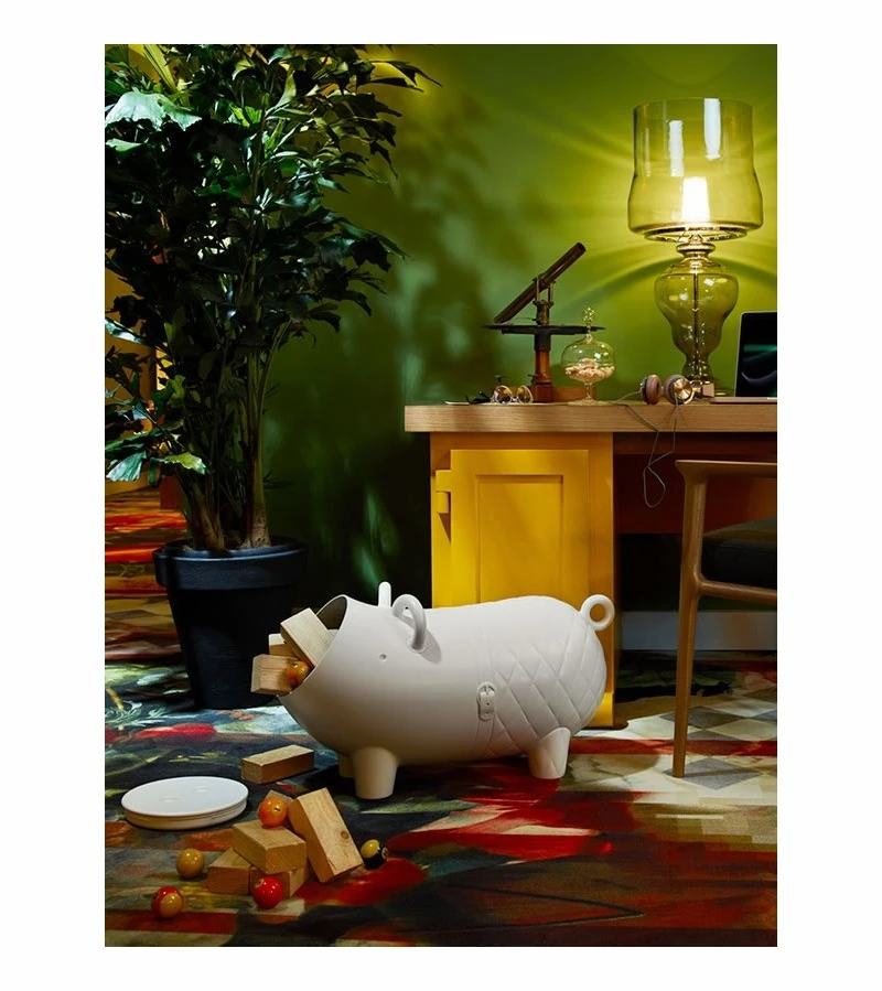 The HAUSSCHWEIN is the delightful centerpiece of the CYBEX by Marcel Wanders ?Parents Collection?, already a must-have for parents with a passion for interior design and furniture. Created and produced in Germany, this charming home icon offers creative storage space – simply remove the HAUSSCHWEIN?s nose and store toys, games, books or magazines inside, for a stylish and convenient addition to any household. With a quilted pattern on its hindquarters, this endearing pig is also available in a sleek matte black finish. For parents who want to pass their creativity on to the next generation through design-forward furniture, the HAUSSCHWEIN is the choice for you.