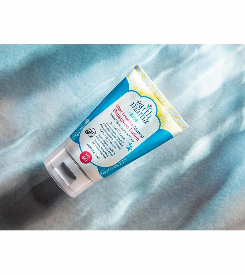 We wanted to be sure this was safe for the rashy-est of skin, so there’s plenty of calming organic colloidal oatmeal and organic shea butter in this creamy uber-sensitive mineral sunscreen lotion (as in way more than the amount of colloidal oatmeal than is required by the FDA to be in an eczema cream)! Thoughtfully formulated so that it’s non-irritating and gentle for sensitive skin, this is a reef-friendly, non-toxic, cruelty-free sunscreen with non-nano zinc — that sits on top of the skin rather than being absorbed, so it can scatter sun rays.