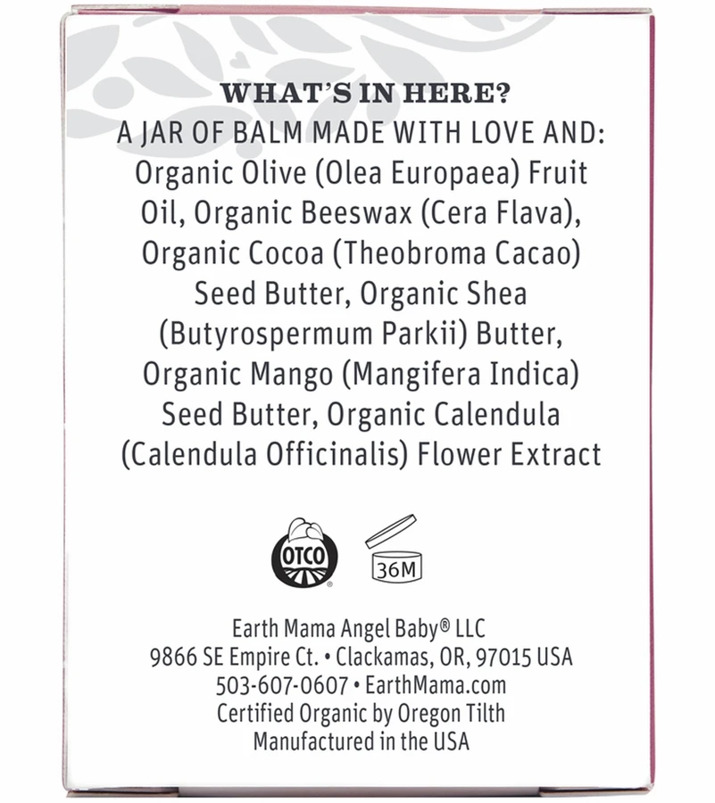 Organic Olive (Olea Europaea) Fruit Oil, Organic Beeswax (Cera Flava), Organic Cocoa (Theobroma Cacao) Seed Butter, Organic Shea (Butyrospermum Parkii) Butter, Organic Mango (Mangifera Indica) Seed Butter, Organic Calendula (Calendula Officinalis) Flower Extract