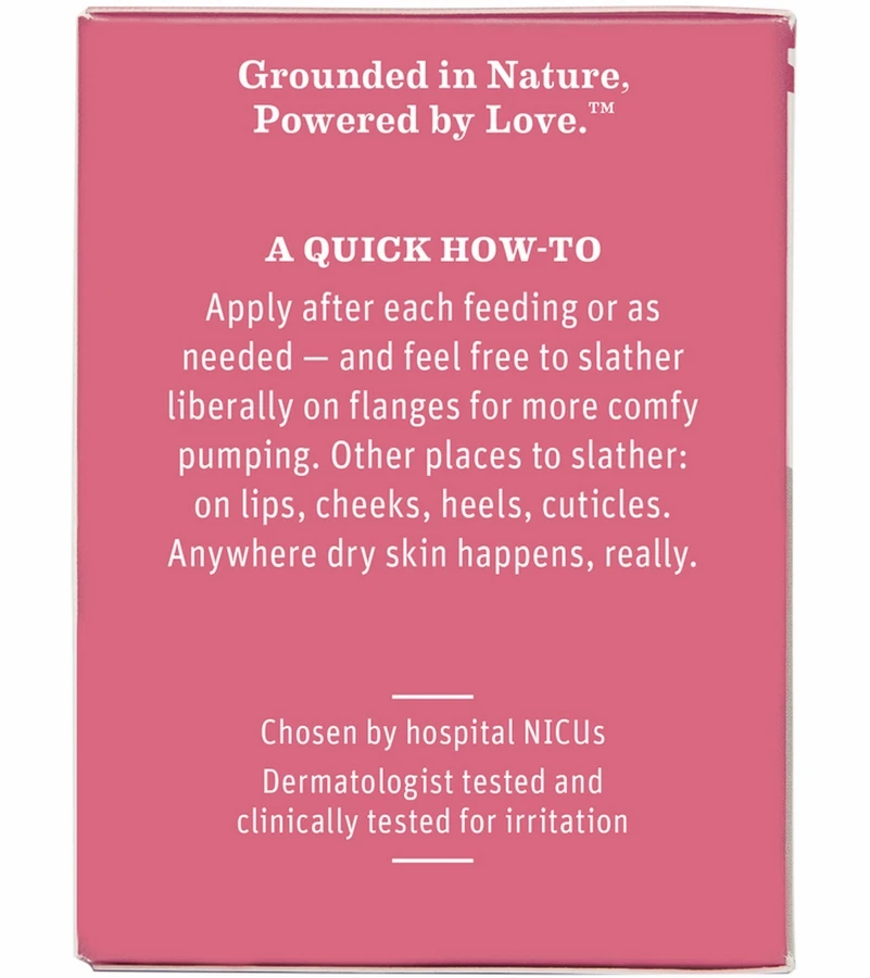 Apply after each feeding or as needed — and feel free to slather liberally on flanges for a more comfortable pumping experience. Other places to slather it: on lips, cheeks, heels, cuticles and elbows.