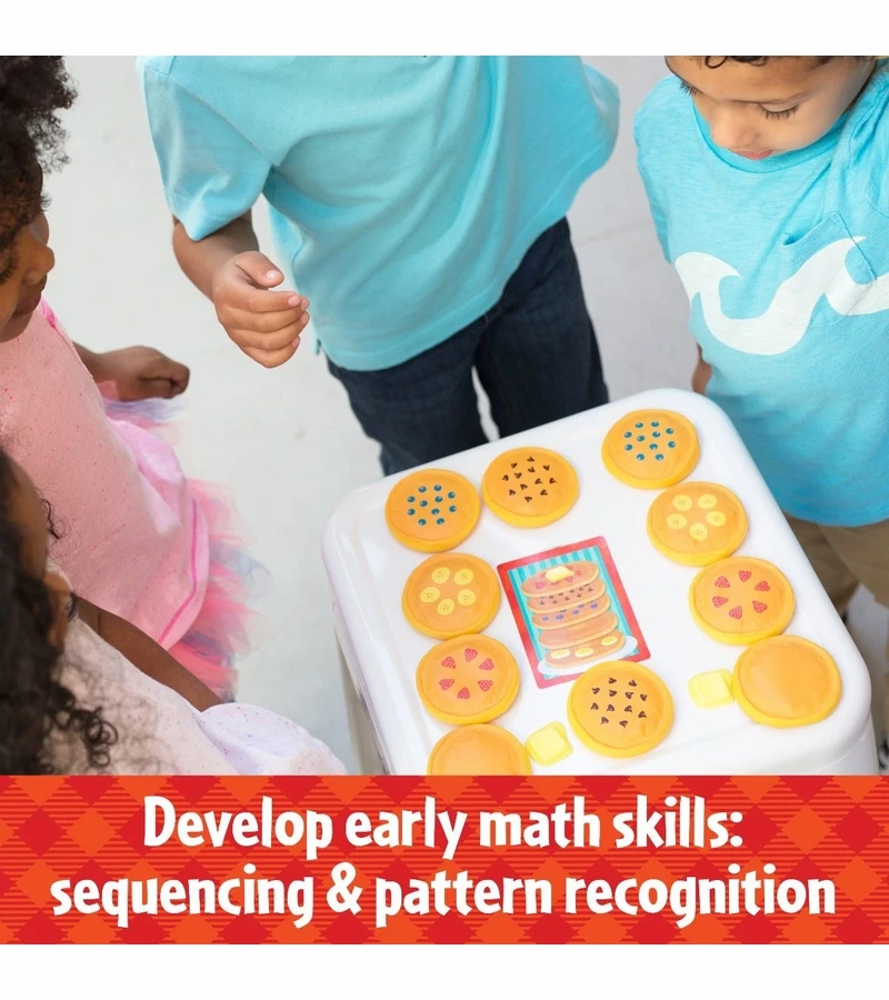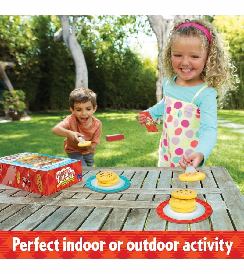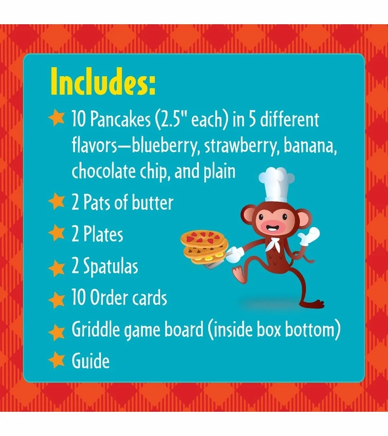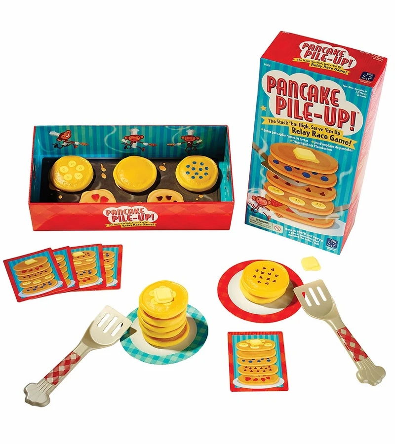 - Players race, relay-style, to stack and serve the pile of pancakes that matches their menu cards