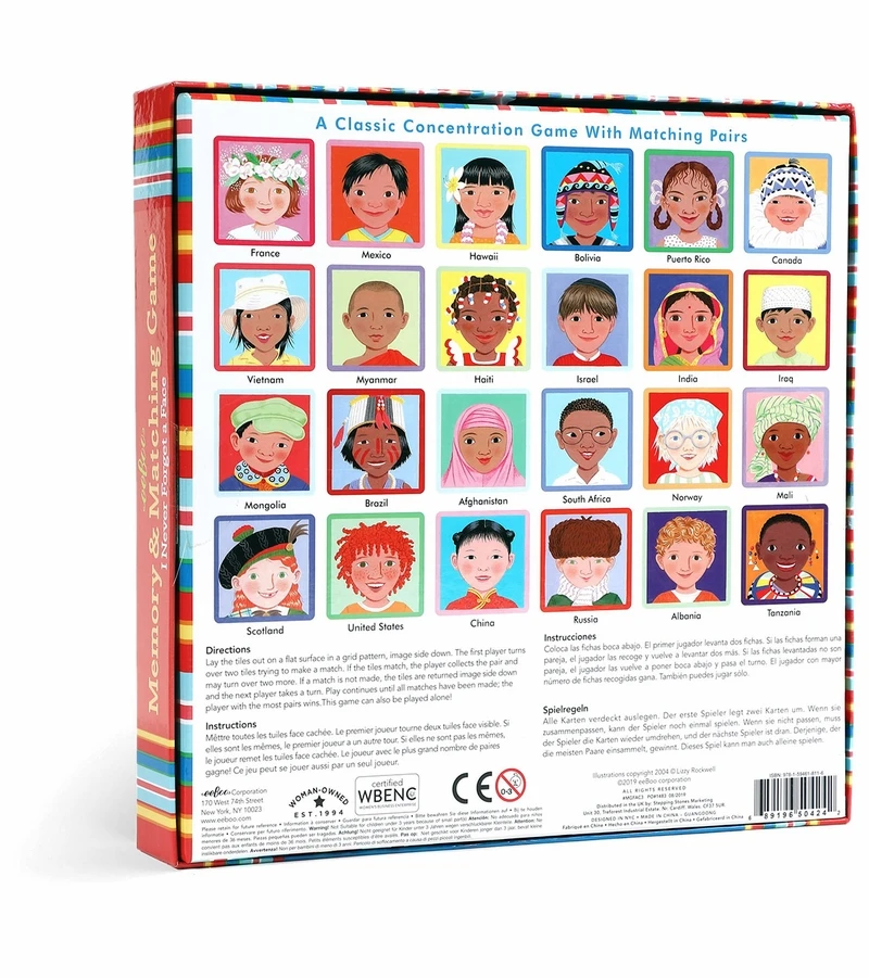 Product Benefit: Introduces diversity, gaining positive familiarity with people from other countries and cultures, celebrating difference while developing patience and memory skills.