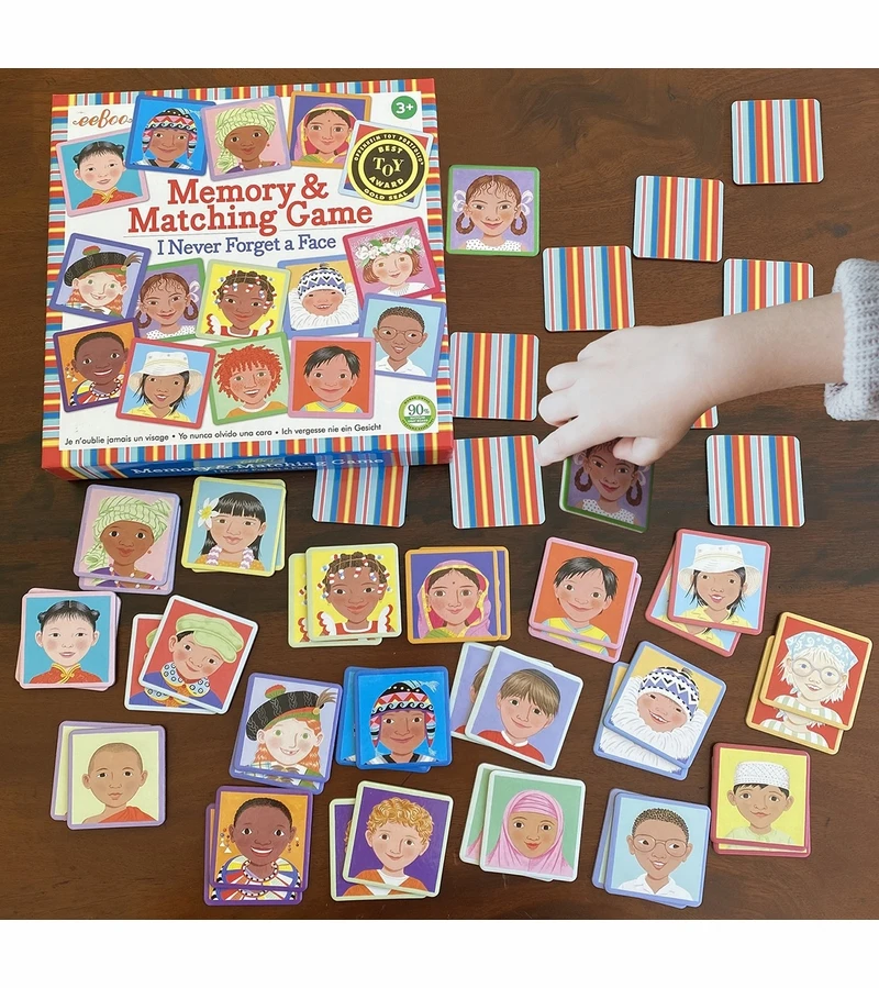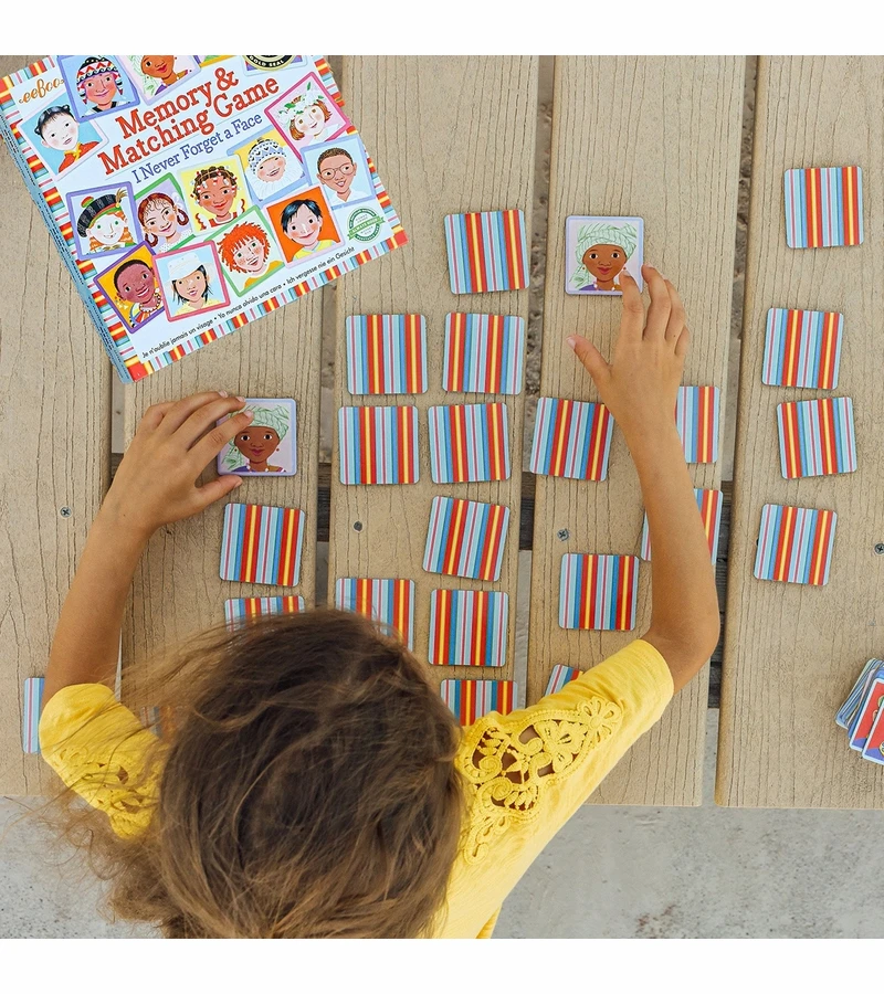 - Classic Memory Game: For ages 3 and up, featuring faces of kids from around the world. 24 pairs to match in a sturdy box measuring 9.5 x 9.5 x 1.5 inches. Young players can start with fewer pairs for an easier game.