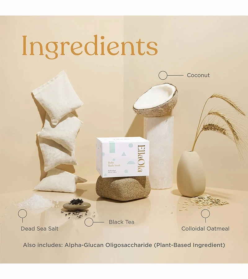 Make bath time a soothing, calming experience with our bath soak for babies, kids and adults. Developed with pediatric dermatologists, each soak pack is filled with a blend of organic colloidal oatmeal, organic coconut, organic decaffeinated black tea and restorative, mineral-rich salt from the Dead Sea and prebiotics to maintain a healthy microbiome.
