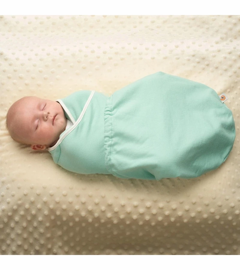 According to the International Hip Dysplasia Institute, “In order for swaddling to allow healthy hip development, the legs should be able to bend up and out at the hips. This position allows for natural development of the hip joints. The baby’s legs should not be tightly wrapped straight down and pressed together. Swaddling infants with the hips and knees in an extended position may increase the risk of hip dysplasia and dislocation.”