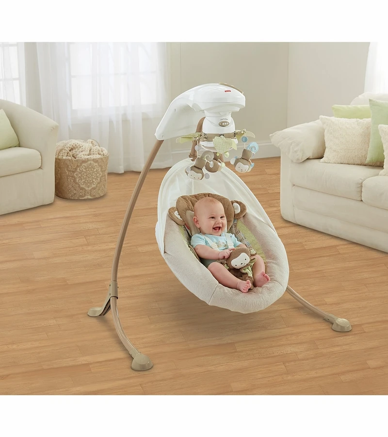 Soft, snuggly and oh-so-soothing—with two swinging motions, a soft-blankie monkey toy, and a variety of customizable features that let you choose and combine what baby likes best!