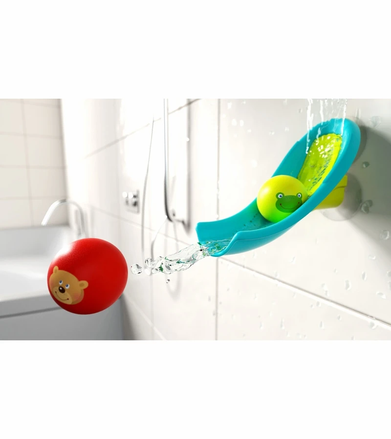 The waterslide can be combined with other HABA Bathing Bliss toys for a full bath time water play area.