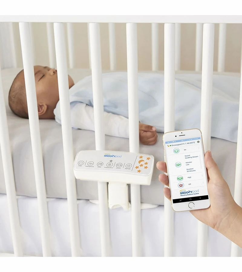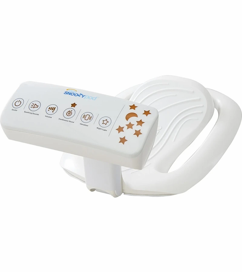 The HALO SnoozyPod? vibrating, all-in-one bedtime soother is the first device to combine soothing sounds and an amber glow night light with gentle vibration to lull infants and toddlers to their best sleep. Designed to fit most cribs, toddler and twin beds, the SnoozyPod creates the perfect environment to make safe sleep more comfortable.