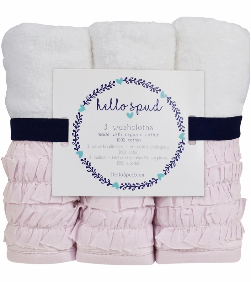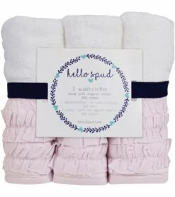 Hello Spud’s Gray Pintuck Washcloth 3-Pack is a lovely gender neutral gift. Made with certified organic cotton. Each set includes three 10″ x 10″ washcloths. Hello Spud’s organic terry cotton is super soft!
