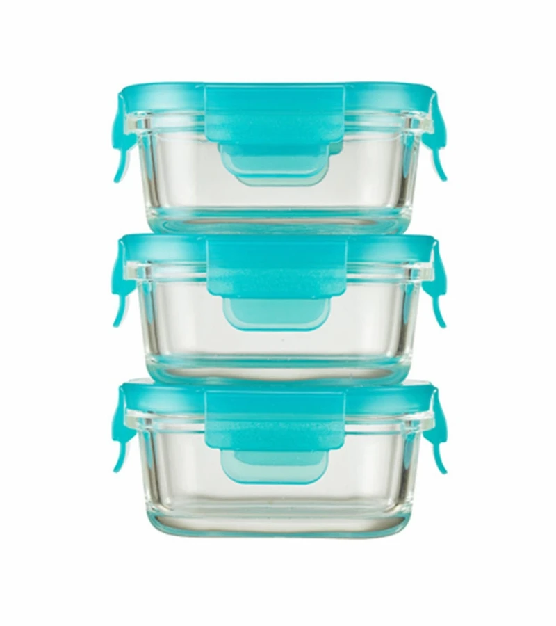 Innobaby Preppin’ Smart EZ Lock Glass Container, Rectangle, 3 Pack – Aqua