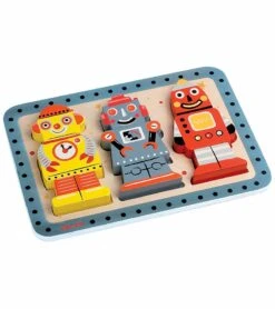 This robotic puzzle features nine chunky pieces that create three robots when the puzzle is complete. Your little one must match corresponding faces, mid-sections, and legs to complete the friendly robots. We like that this puzzle can also function as a stacking toy. Pile the chunky pieces on top of each other in endless ways to make new and silly robots. This wooden puzzle was designed in France by Janod.