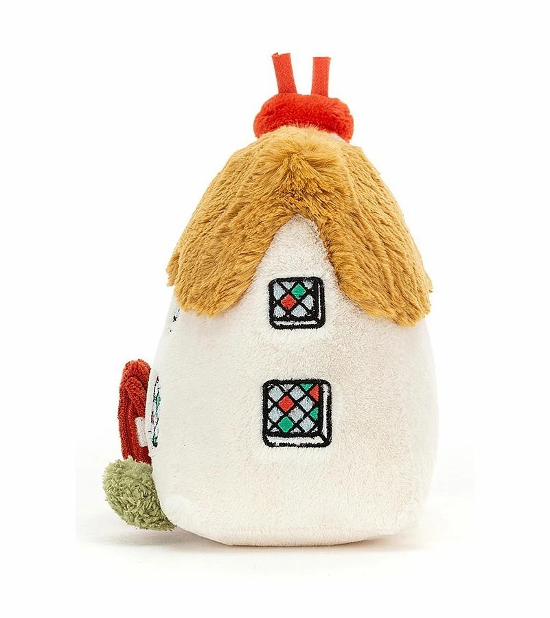 The Bonny Cottage Activity Toy is a happy haven for little hands! With a fuzzy thatch roof, suedey chimney, stitchy windows and bobbly bushes, this cheery chateau is full of surprises! Open up that velcro door and explore this huggable house!