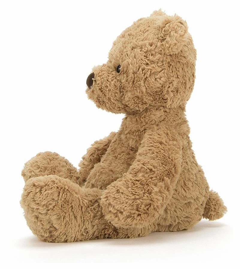 A sandy, dandy teddy, Bumbly Bear is simply scrummy. A ruffly, fluffy fellow with an extra-long snout for vintage style, he’s a classic bear with a modern twist. His large head and tummy and chunky feet make him just the chap for bedtime hugs.