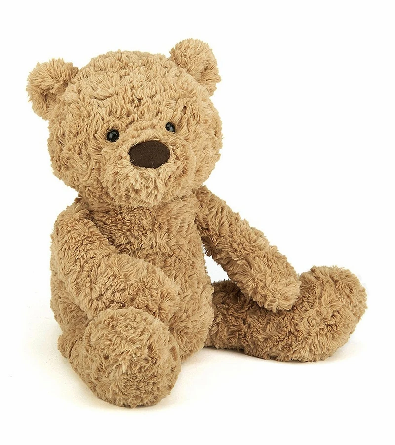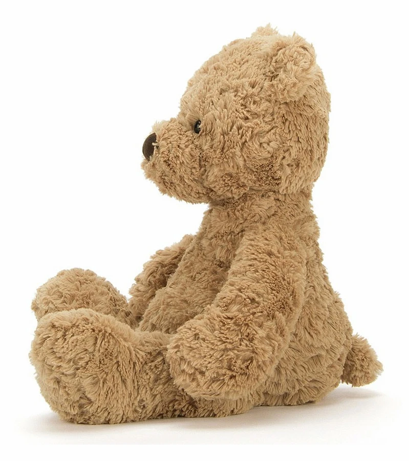 A sandy, dandy teddy, Bumbly Bear is simply scrummy. A ruffly, fluffy fellow with an extra-long snout for vintage style, he’s a classic bear with a modern twist. His large head and tummy and chunky feet make him just the chap for bedtime hugs.