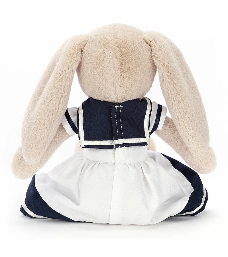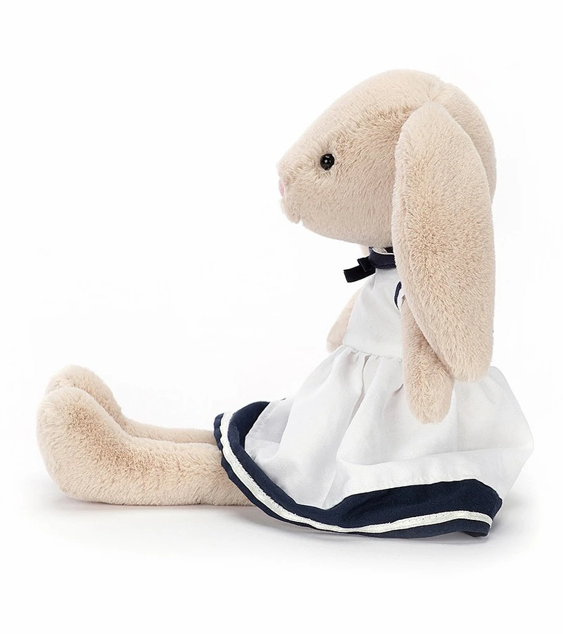 Join Lottie Bunny Sailing for boating adventures on the high seas! With creamy ears rippling in the breeze, and bow fluttering on her crisp white and navy sailing dress, Captain Lottie is ready to crest the waves. Set course for cuddles!