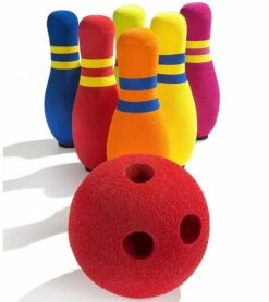 Practice bowling inside or outside with this International Playthings Kidoozie Six-Pin Bowling Set.