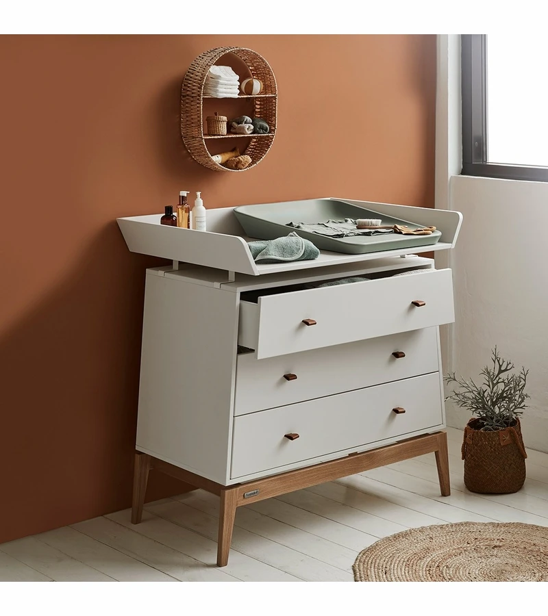 The award-winning design has a acontemporary look and will be a stylish it-piece in your home. The molded Matty™ changing mat is extremely durable. It has no seams or cracks where dirt and bacteria can hide. This means that the changing mat stays hygienic, even after several years of daily use. The water-repellent surface is easy to clean and can be disinfected.
