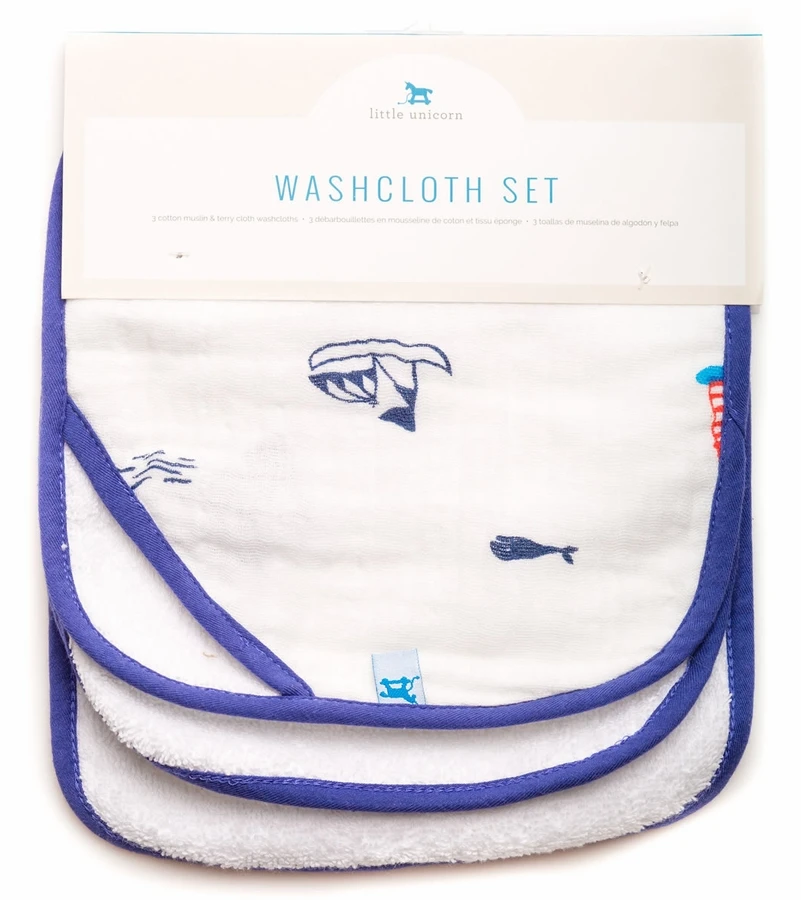 - 2 pocketed mitt washcloths and 1 standard washcloth