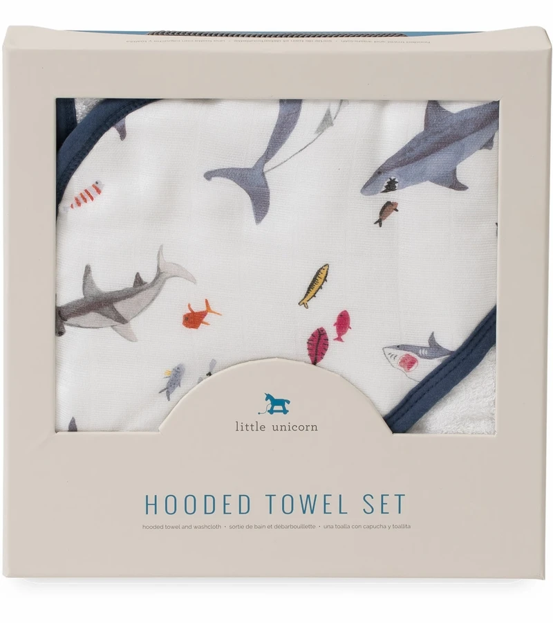 Little Unicorn Cotton Hooded Towel & Washcloth – Shark