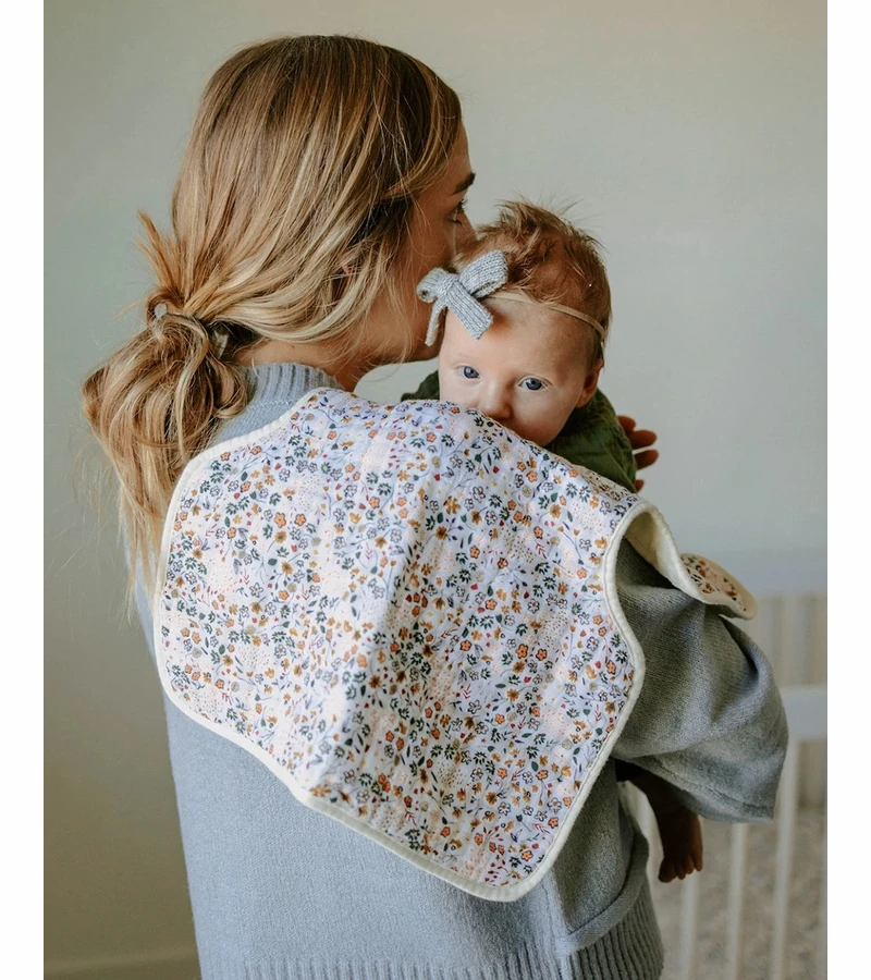 There’s no use crying over spilled milk. With 4 absorbent layers of cotton muslin and an innovative shape, our burp cloth keeps you clean and dry while baby’s snuggled tight.