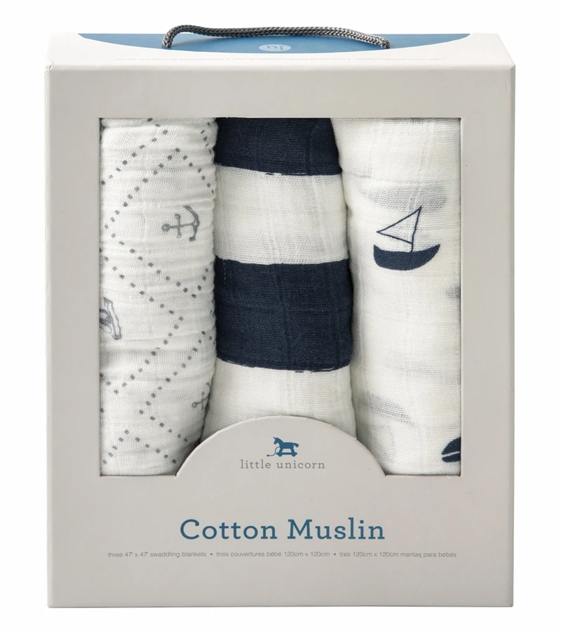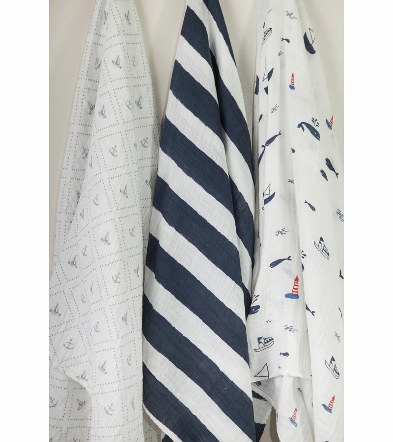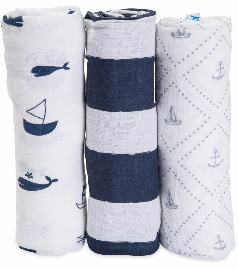 - Set includes Anchors Aweigh swaddle, Nautical Harbor swaddle, and Navy Stripe swaddle