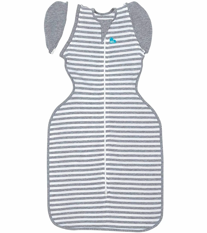 The Love To Swaddle UP? 50/50 can be used just like the original Swaddle UP until your baby is ready to transition. Just zip off one wing so that one arm is free & the other is still swaddled. After a few nights, simply remove the other wing. Congratulations! Your baby is now transitioned! The transition period should only take a matter of days.