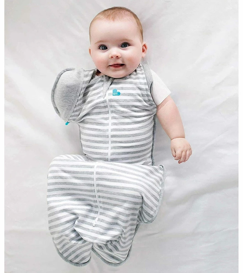 A smarter way to transition your baby from swaddle wraps to sleep bag or out of any swaddle.
