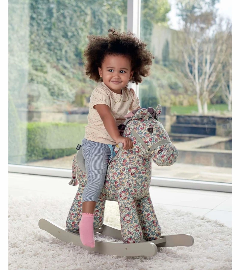 Liberty is a beautiful, floral rocking horse born out of Mamas & Papas’ collaboration with Liberty of London. As well as looking beautiful, featuring the stunning Claire Aude print, Liberty provides lots of fun. Your little one can even press her ear to hear her neigh! Encourages imaginative play and interaction as well as developing motor skills.