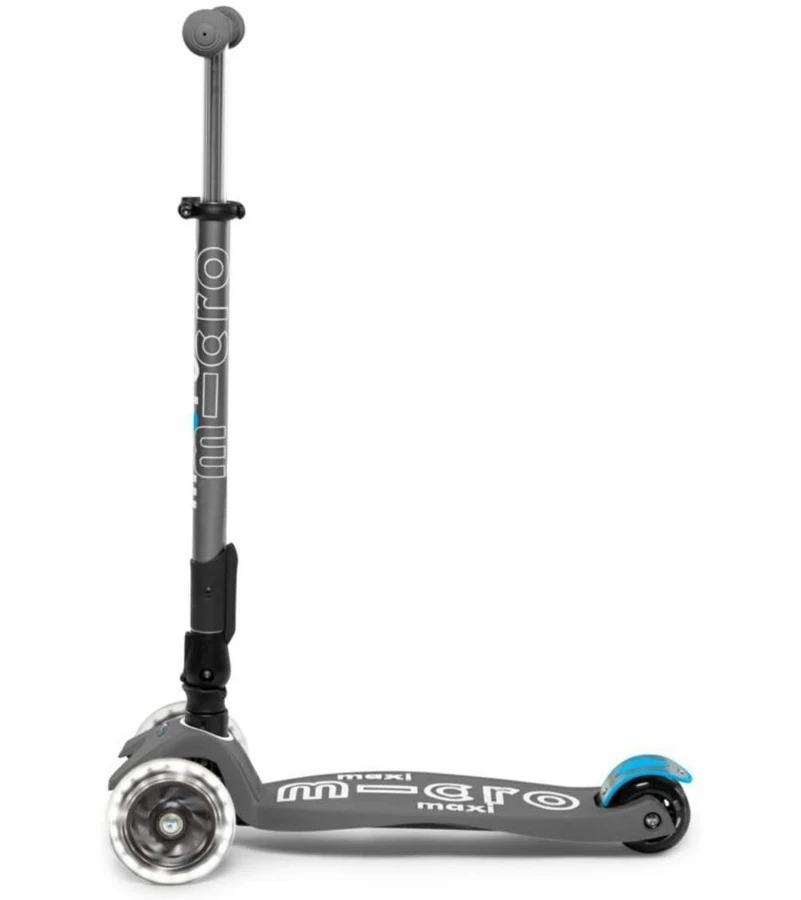 The Maxi Deluxe Foldable LED takes the multi award winning, much revered scooter for ages 5-12 to the next level. This deluxe version has an anodized stem for extra protection against wear and tear, a unique, silicone-injected footplate for improved grip, and an adjustable, easy-folding T-bar, making your travels even more convenient.