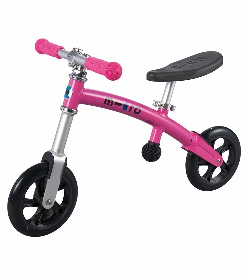Bypass training wheels by teaching balance from the start with Micro’s lightweight, easy to ride balance bike, the ‘G Bike +’. It’s a bike without pedals or chains that toddlers propel with their feet, learning balance and coordination needed to ride a bike later in life. Constructed of aluminum, the G-Bike + is ultra lightweight. At only 6.4 pounds, children have the ability to control and maneuver it easily. The G-bike can be used year-round, indoors and out, thanks to the quiet, smooth-gliding, non-marking wheels. The seat is adjustable from 13 inches to 15.5 inches and the handlebars are adjustable from 20 inches to 21 inches.