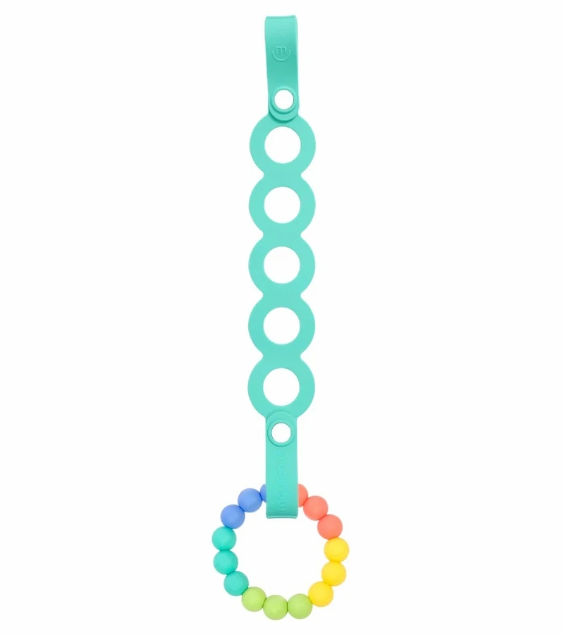 This rainbow ring teether is a perfect companion for baby. Entertain your little one with colorful beads that provide soothing gum relief, and a ring that is sized for small hands to easily grasp. It pairs with a morepeas⢠tether to save it from dropping on the floor, making it the best baby teething toy for on-the-go.