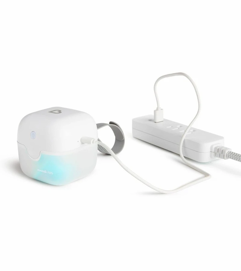 Babies drop things in dirty places at the worst times. The portable Mini Sterilizer Plus sanitizes pacifiers, bottle nipples, and more in under a minute and is powered by a lithium-ion rechargeable battery, so you can sterilize items longer on-the-go. The Mini Sterilizer Plus safely eliminates 99.99% of germs, bacteria, viruses* including (ATCC VR-740, Strain 229E) – a seasonal strain from the same family as -19 using just UV light and has been tested by independent labs. No chemicals, heat, or water needed! The Mini Sterilizer’s 4 gold-plated UV LED lights are mercury and ozone free and auto shuts-off when the lid is opened. This small device is easy to throw into (or attach to) a purse or diaper bag, so when you need it, it’s right at hand. Perfect for use in the home, but extra handy for public spaces such as daycare, playgrounds, doctor’s offices, airports, and more! The lithium-ion rechargeable battery lasts for more than 100 use cycles on a full charge – to recharge, simply connect the included USB cable to a portable power bank, car charger or laptop. UV light is a safe and proven method of killing bacteria that is used by hospitals to sanitize everything from operating rooms to surgical equipment. Munchkin has partnered with 59S, the leader in UV LED technology, to develop convenient, UV-based sterilizing solutions that help families with young children lead healthier lives.