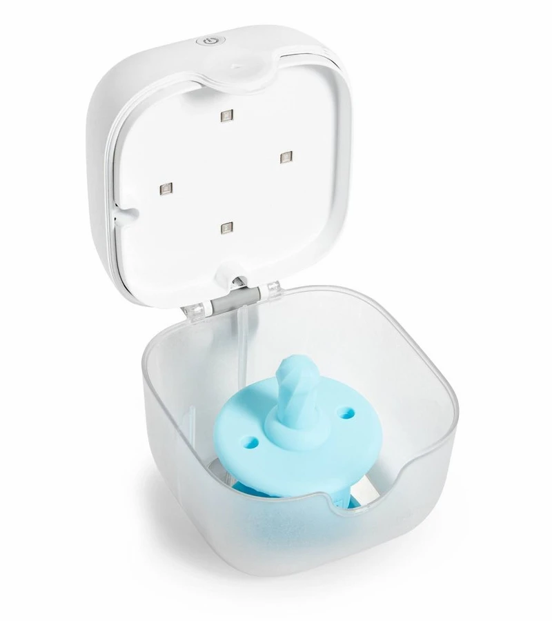 - Kills 99.99% of bacteria & viruses from pacifiers, bottle nipples, teethers, small baby items and even retainers and mouthguards at home or on the go! Child safe UV light auto shuts-off when lid is opened.