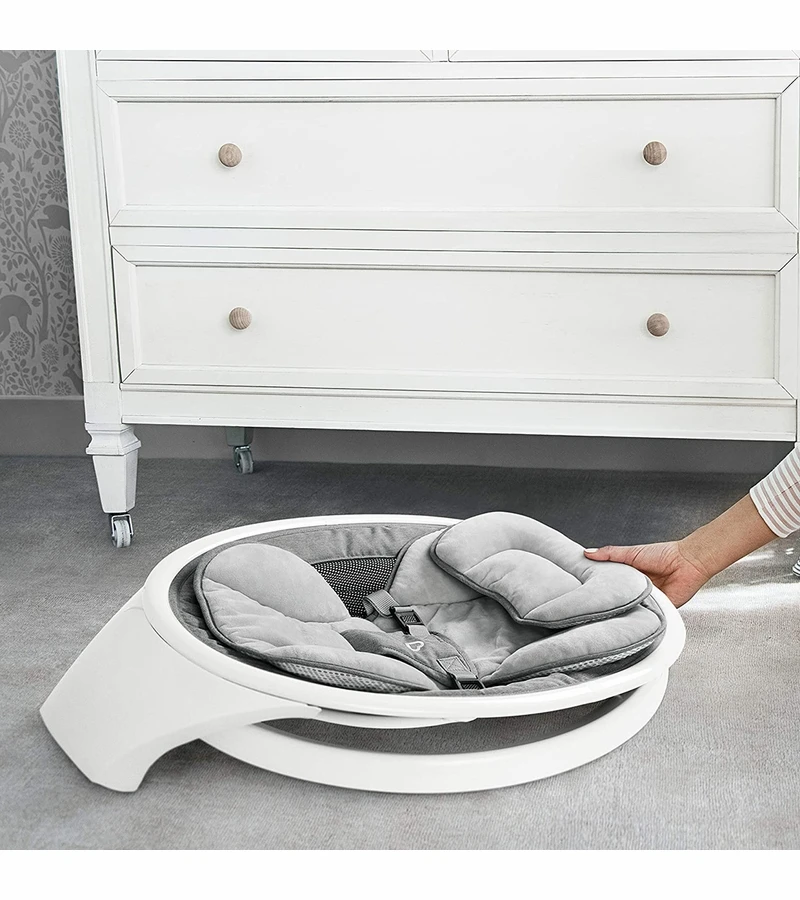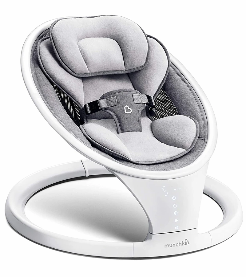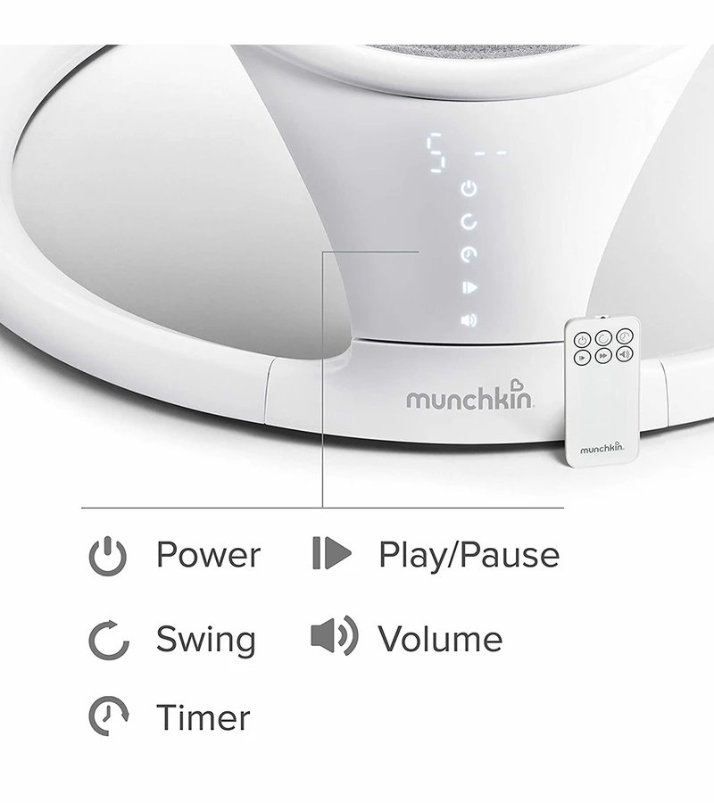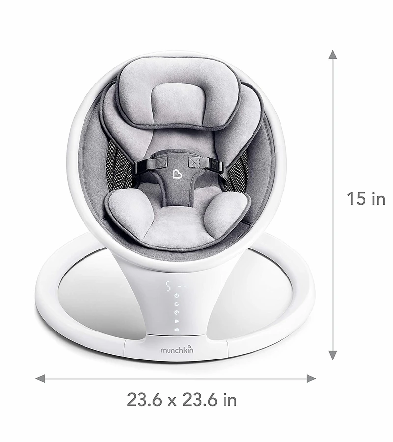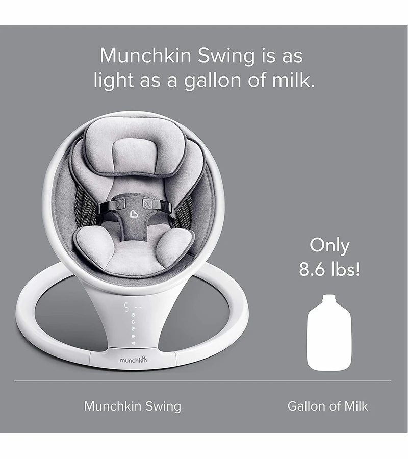 Some babies only nap when rocked or held – which is downright exhausting for sleep-deprived moms and dads. When you need a second or third set of arms to get through the day, Munchkin’s Bluetooth enabled Swing is here for you! A study in sleek functionality and smart design, this baby swing has a compact silhouette that’s easy to put together and break down again. It recreates the calming side-to-side swaying motion most babies love, making it the next best thing to being cradled in your arms. The included remote lets you control everything from the motion and timer to the selection of calming sounds. Soothe your mini impresario with classical music from Bach, Beethoven, Mozart and Chopin, or one of eight ambient sounds. Since the swing is Bluetooth compatible, you can connect to your phone and stream baby’s favorite tunes, too! At under 10 pounds, this lightweight infant swing conveniently disassembles into two parts, so you can store it away in tight spots — even under the bed! And since it’s so easy to pack down, it’s also perfect for transporting to grandma’s house, on vacation, or simply room to room at home. Time to reclaim your arms — and your sanity!