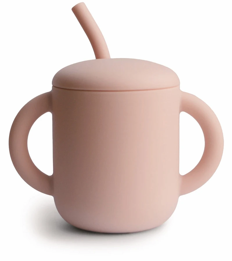 Silicone Training Cup + Straw may be cleaned by hand or in a dishwasher. To clean, wash with warm, soapy water and let air dry.