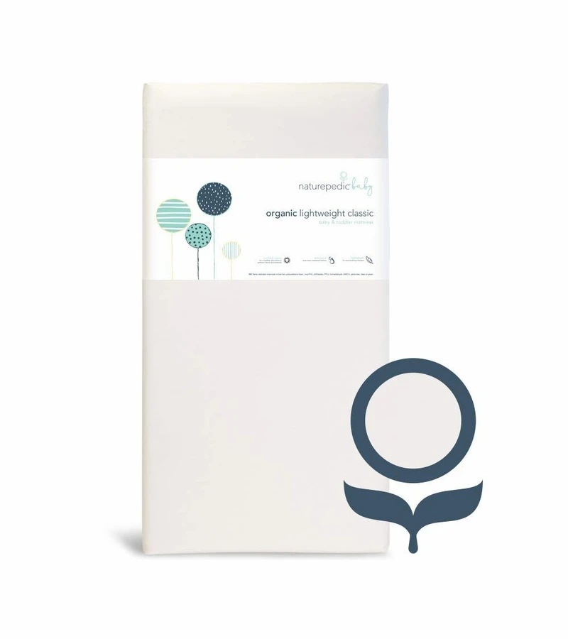 The Naturepedic Organic Cotton Lightweight Classic matches the strength and durability of an innerspring without the added weight. Layers of luxurious organic cotton batting create the perfect balance of firmness and comfort. Get the best of both worlds; firm and comfortable for baby with long lasting durability and easy crib changing for mom! At its core, this mattress is built with Naturepedics exclusive patent pending wavesupport technology, made from pure food-grade polyethylene. Naturepedic is a GOTS certified organic mattress manufacturer and has earned the trust of moms and doctors across the country. Naturepedic also meets the strictest GREENGUARD® certification standards for eliminating chemical emissions. Winner of numerous awards and prestigious endorsements, Naturepedic organic crib mattresses are simply the healthiest available.