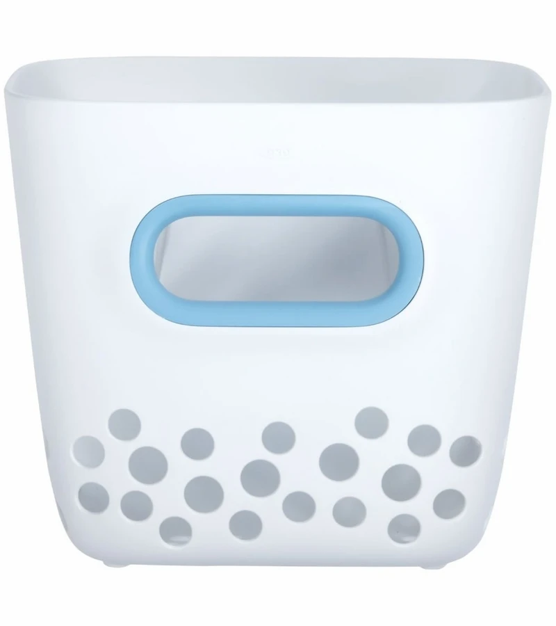Give your tot’s bathtime toys a compact, convenient home in the OXO Tot Bath Toy Bin. This slim Bin features a large, soft, comfortable handle to easily scoop toys out of the tub. Place the Bin on the sturdy plate to store, or use its flat bottom to stand it up next to the bathtub. Large holes let air get through and water drain so toys and accessories dry quickly. The sleek, compact design is perfect for any bathroom décor and is great for smaller or shared bathrooms. Don’t let the name fool you – the Bath Toy Bin is also great for storing shampoo and body wash bottles! The Bin is dishwasher safe for easy cleaning.